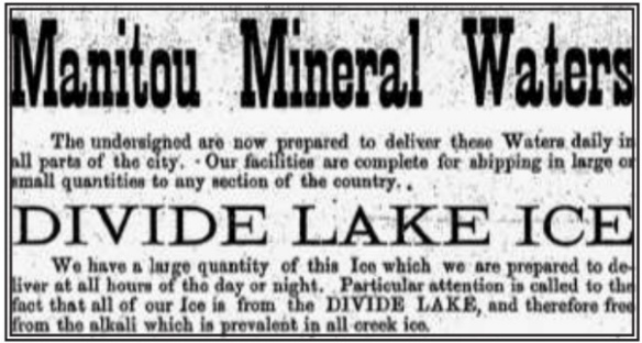 November 1888: “The ice crop at Palmer Lake is worth about $3,000 a year.”